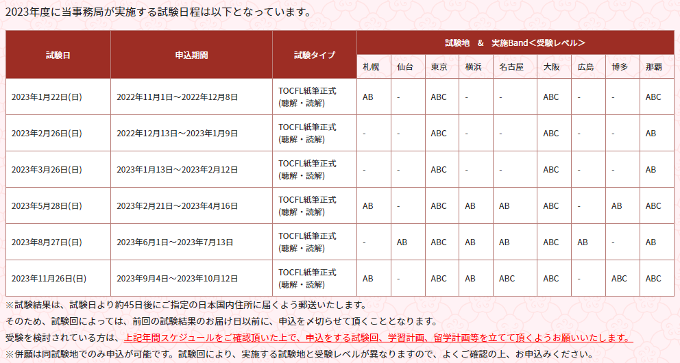 TOCFLの試験開催スケジュールは、年内すべての分が決まったようです!